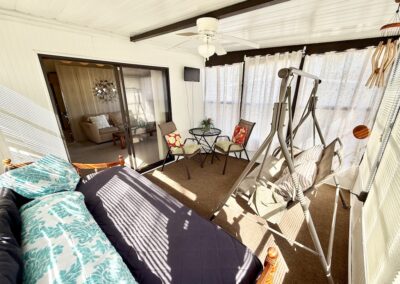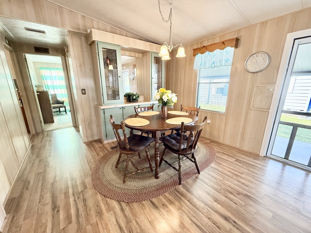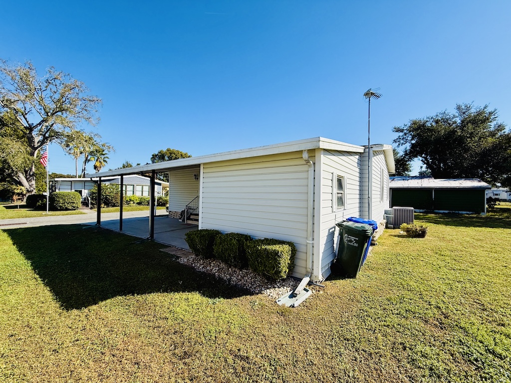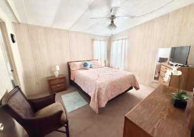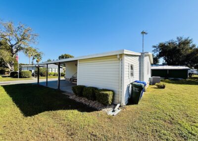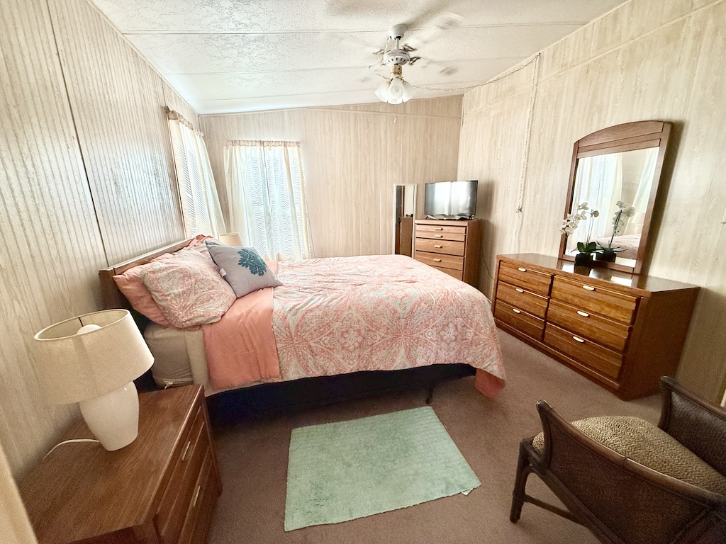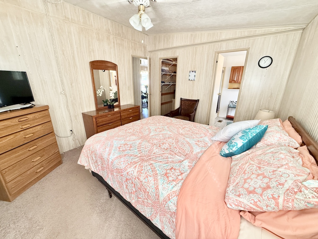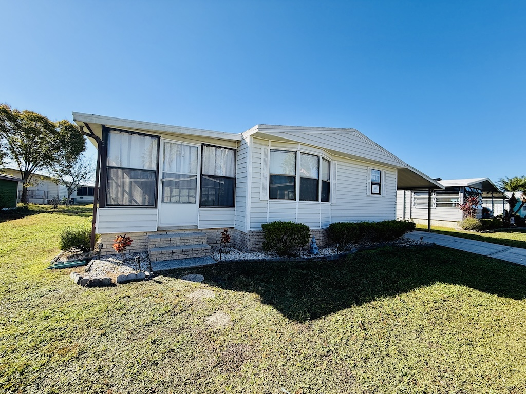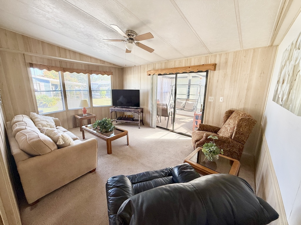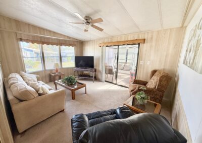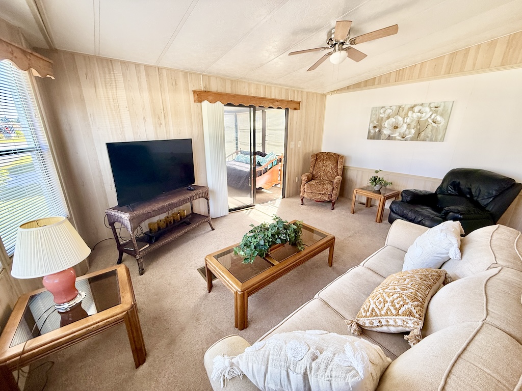 WELCOME HOME!! THIS 2-BEDROOM, 2-BATHROOM HOME COMES FULLY FURNISHED AND IS READY FOR YOU!! Nestled on a quiet street that overlooks a small pond, the home provides convenient access to the community’s private gate. Additionally, you will find a generous backyard along with a LARGE shed, ensuring plenty of storage options. Within the house, you’ll discover vaulted ceilings, a kitchen with a breakfast bar equipped with 2 stools, seamlessly connected to the dining room, which includes a built-in hutch. The sunroom, located next to the living room, serves as the perfect place for enjoying evenings with family or friends. Each bedroom is furnished with queen-sized beds and contains a walk-in closet. The main bathroom includes a tub/shower combination, while the master bathroom is fitted with a walk-in shower. With a lot rent below $700, this home serves as an ideal getaway for snowbirds. Contact us today to arrange your showing. **Home is sold fully furnished.**