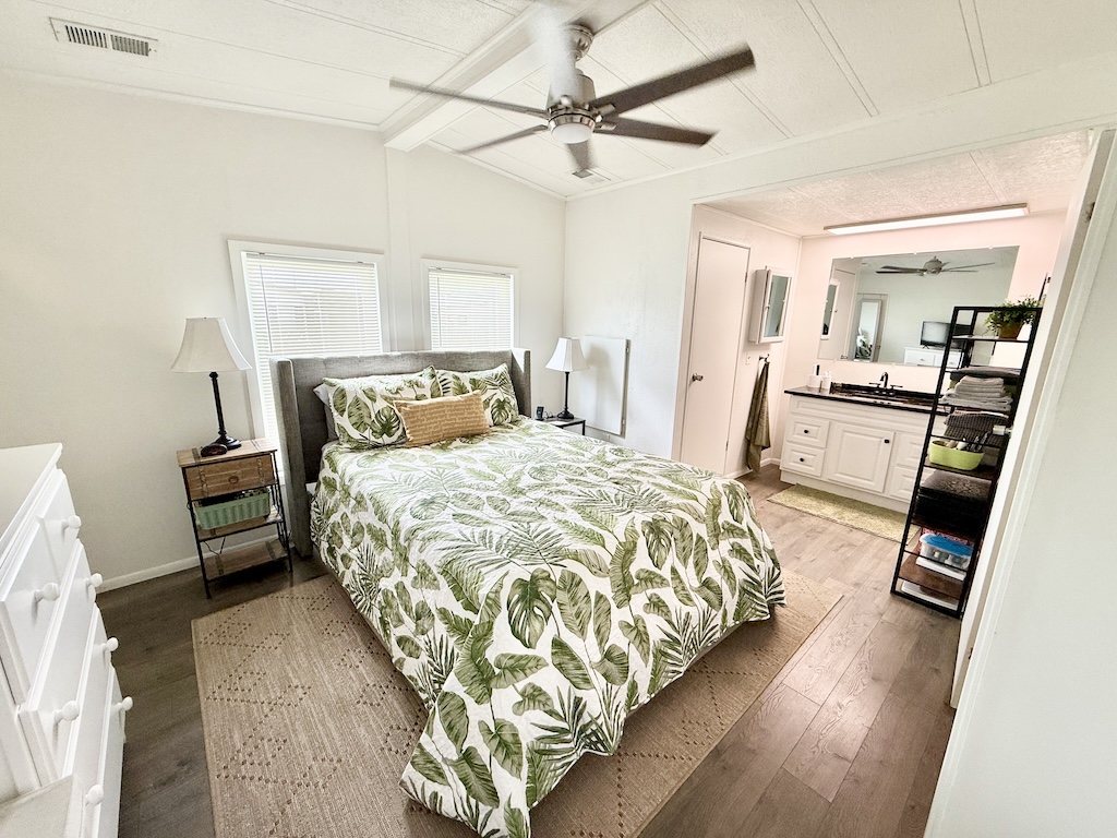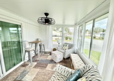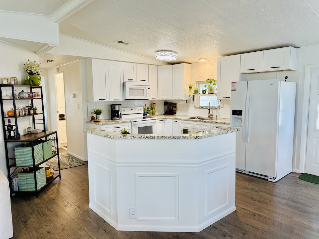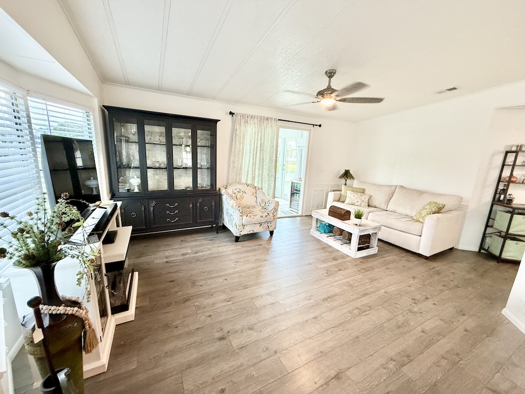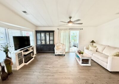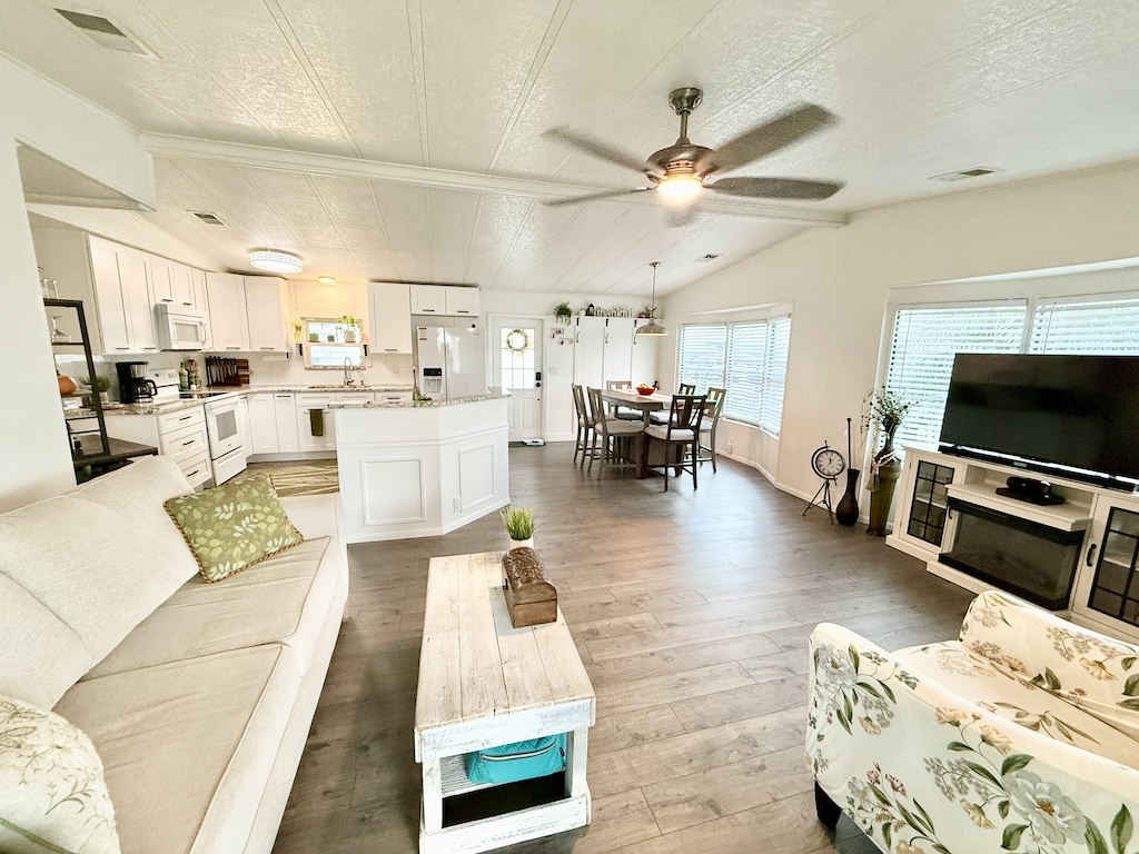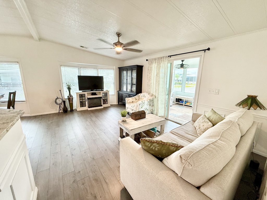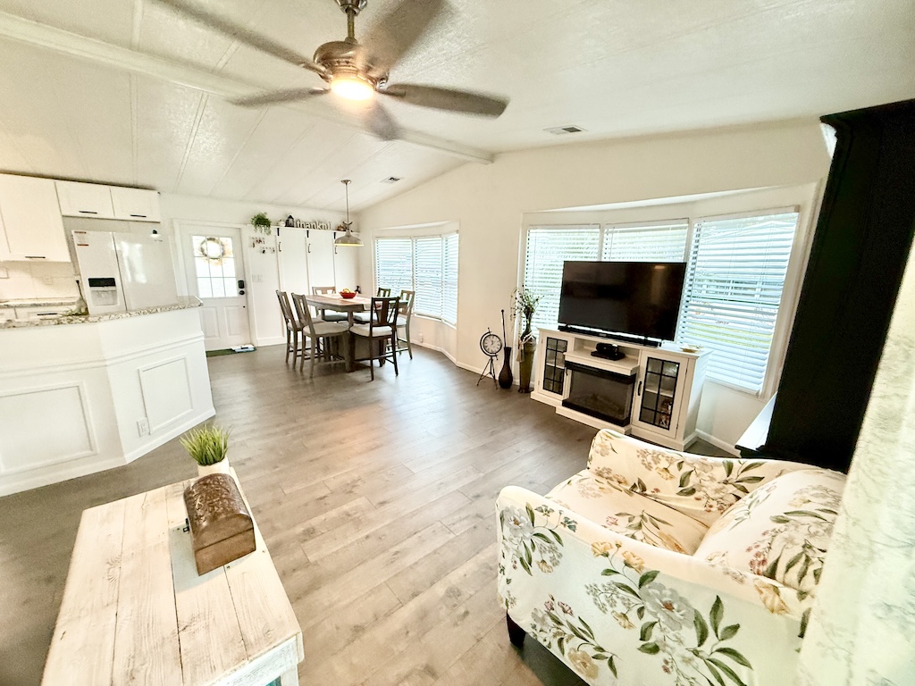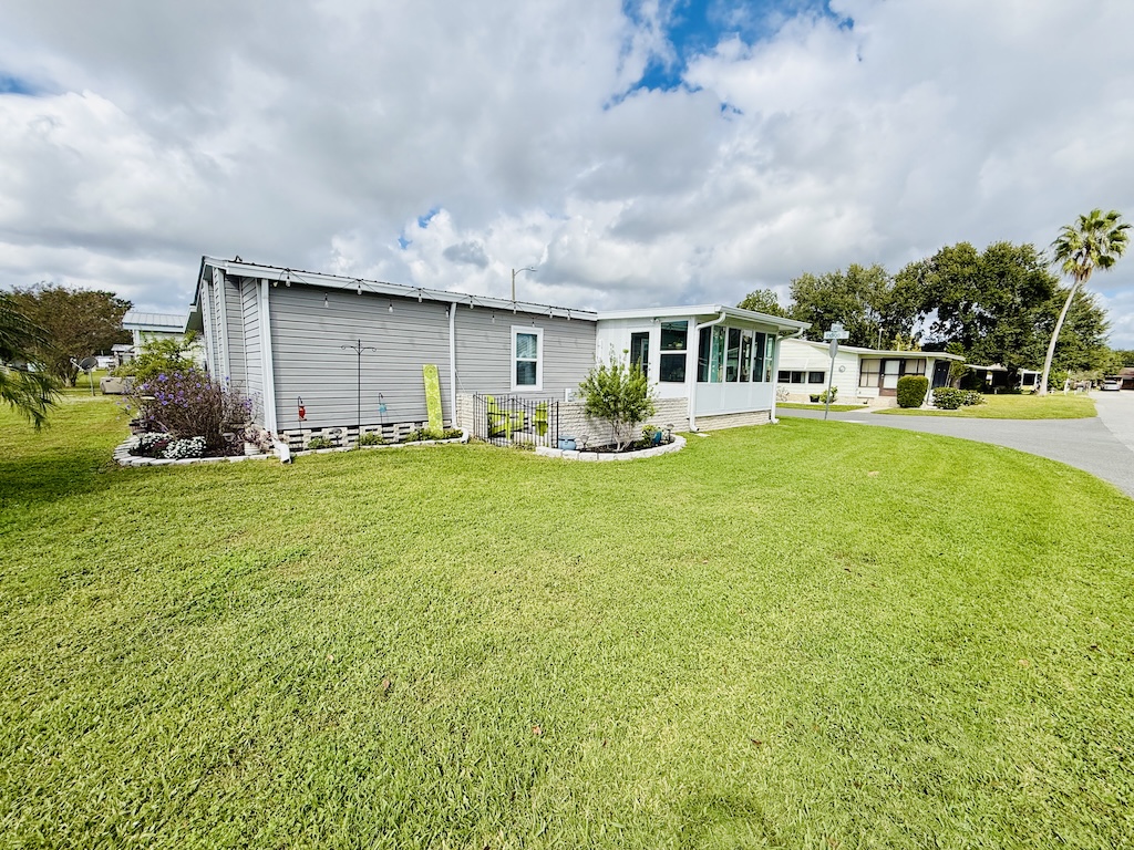 EXQUISITE CORNER LOT 2-BEDROOM, 2-BATHROOM HOME WITH AMPLE SPACE!! This home is impressive both inside and out. Begin in the kitchen which boasts granite countertops, a center island, and flows seamlessly into the dining and living areas. Further down the hall, the guest bathroom, which has been beautifully remodeled, is complete with a granite countertop and a new walk-in shower equipped with a waterfall shower head. Within the guest bathroom is an indoor laundry room that comes with a washer and dryer. A NEW sunroom has also been added, equipped with a split A/C unit and double pane windows. Additional highlights include a large backyard, a durable metal roof, luxury vinyl plank flooring throughout, tinted windows to minimize heat, vaulted ceilings, a critter screen, and an upgraded sliding glass door. To finish it all off, a large shed offers plenty of extra storage space. Don’t miss your opportunity to own this stunning home! Contact us today! **Ask agent about details regarding furnishings.**