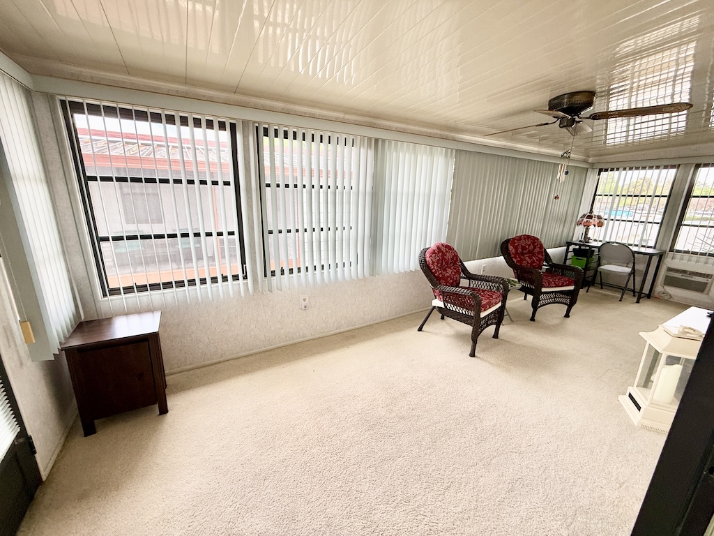 CHARMING, MOVE-IN READY TURN-KEY HOME IN A FANTASTIC PARK IN CENTRAL LAKELAND!! This 2-bedroom, 2-bath home features high vaulted ceilings, energy-efficient double pane tilt windows, an indoor laundry room, and two distinct living spaces, a main living room and a den. The centerpiece of the home, the kitchen, is equipped with a center island and upgraded fridge and dishwasher. Experience the joys of Florida living throughout the year, thanks to a sunroom and screen room. As an added bonus, the screen room contains double doors, allowing you to conveniently drive your INCLUDED golf cart right inside. With no neighbors behind you, a private rear patio, a critter screen around the home’s perimeter, and up to date pest control, this home offers simple, low maintenance living. Schedule your showing today! **Home is sold furnished.**